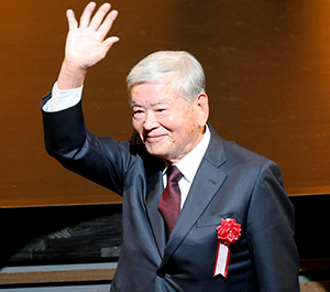 来賓紹介で名前を呼ばれ、立ち上がって客席に手を振る川淵三郎さん