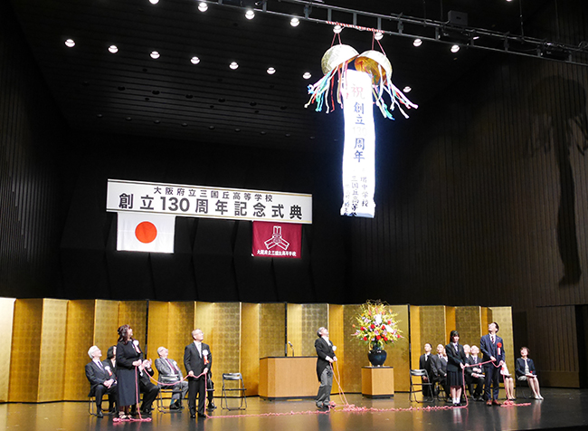 「創立130周年は、47500日の日々を縦の糸、学校関係者、生徒の努力を横の糸として紡いだタペストリー。在校生のみなさん、ぜひこのタペストリーを更に大きく立派なものに紡ぎ続けてください。そして、三国丘高校で受けたご恩を、単に母校だけにとどまらず、地域のため、この国のため、そして全人類のために、『恩送り』(Pay it Forward)をしてください」──この日出席した在校生に向け、仲林信至同窓会長が激励の意をこめて述べた言葉だ。