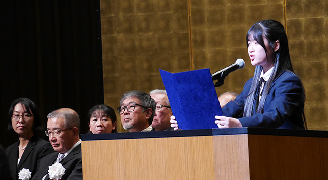 生徒代表による「慶びの言葉」