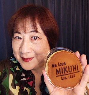今年11月15日の東京三丘会総会では司会を務めた。そのときもらった母校創立130周年記念のどら焼きを手に。